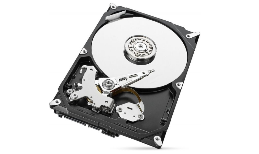 Disco rígido Seagate Barracuda 1TB com etiqueta branca e corpo metálico prateado