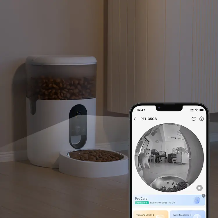 - Conexão e controlo remoto via app pode gerir o comedouro via Wi-Fi através da aplicação, definindo horários de refeição, porções, e controlando tudo mesmo à distância. Além disso, é compatível com assistentes de voz como Alexa e Google Assistant.